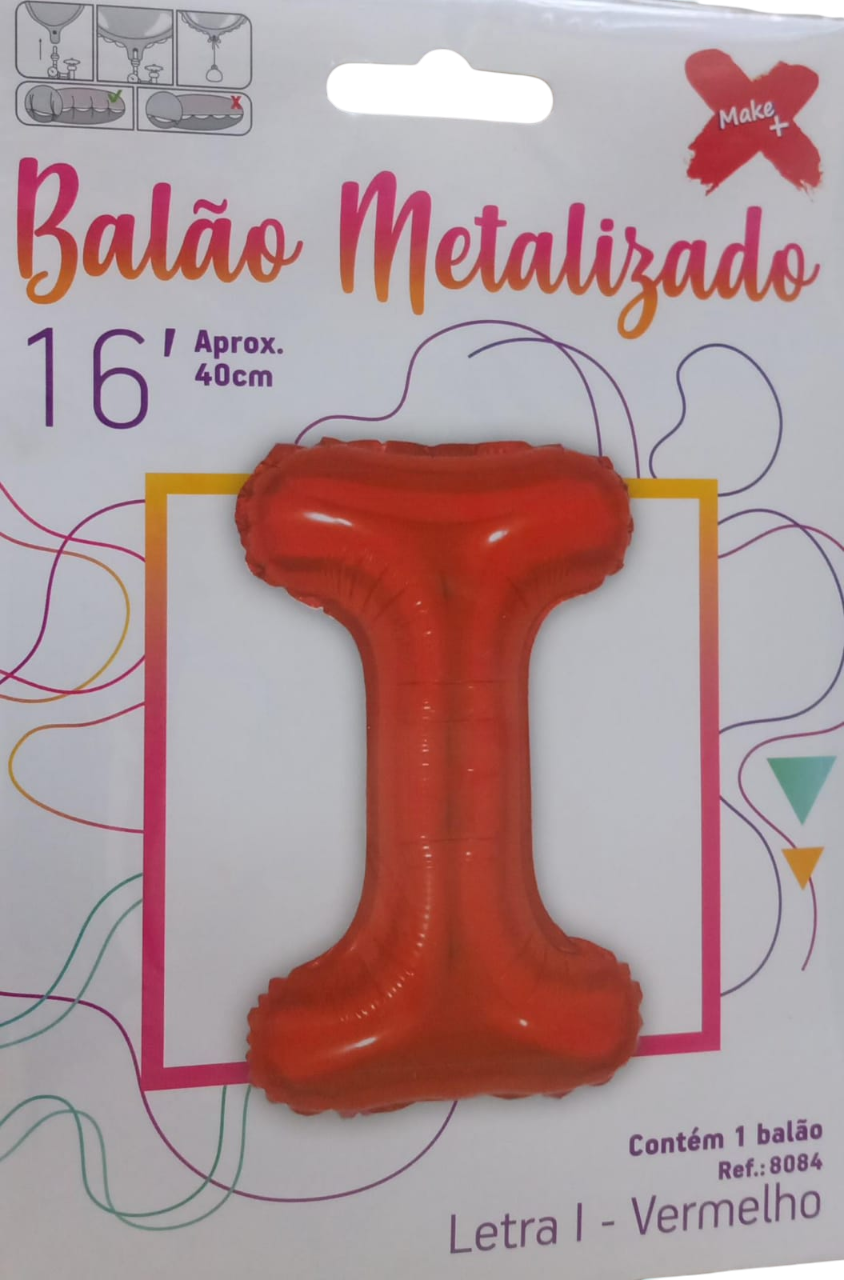 BALÃO LETRA "I" METALIZADO VERMELHO 16 POLEGADAS 40 CM MAKE +