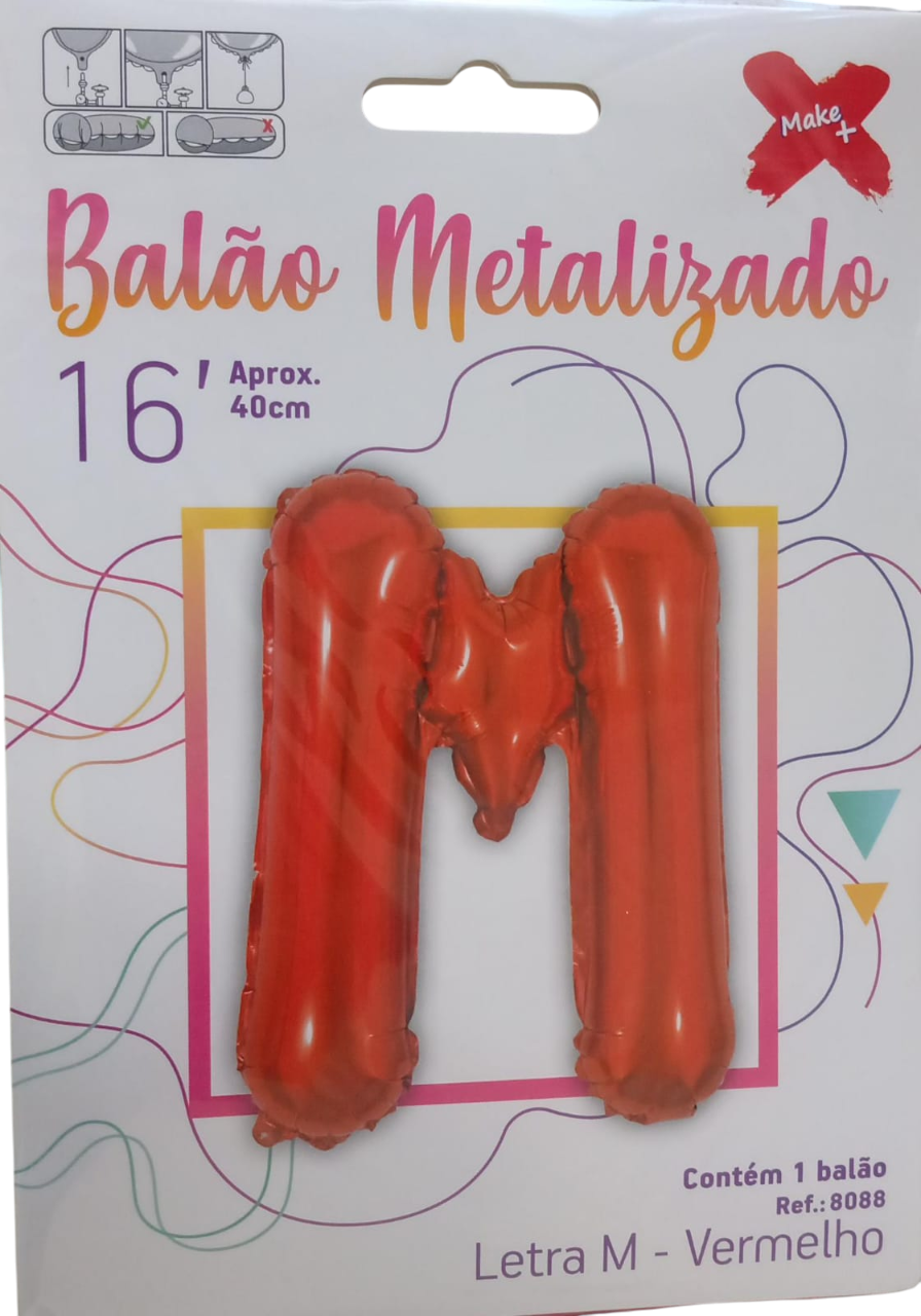 BALÃO LETRA "M" METALIZADO ARCO ÍRIS 16 POLEGADAS 40CM MAKE +
